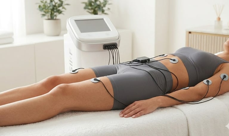 Hedeflenen kas gruplarına gönderilen düşük voltajlı akımlarla kasları pasif olarak çalıştırır; efor sarf etmeden vücudun toparlanmasına, sıkılaşmasına ve kas tonusunun artmasına yardımcı olur.